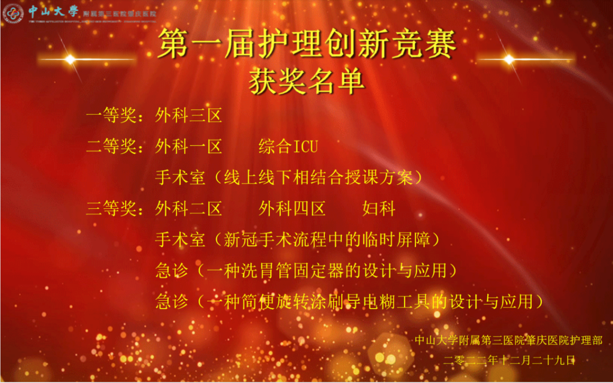 ? ? ? 為進(jìn)一步提高臨床護(hù)理管理水平和護(hù)理服務(wù)能力,激發(fā)護(hù)理人員的創(chuàng)造性,2022年12月29日護(hù)理部舉辦首屆護(hù)理創(chuàng)新競賽。